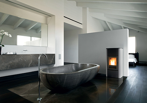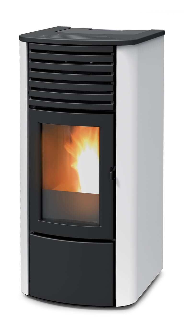 Гидравлическая печь на гранулах с фронтальной вентиляцией. Верх из чугуна и стальные стенки белого, темного, серебристого, бордового цветов. Он доступен в двух вариантах мощности: 16 кВт, идеально подходящий для квартир или домов площадью до 140 квадратных метров, и 24 кВт, предназначенный для больших помещений площадью более 200 квадратных метров. Это часть новой линии «Easy» MCZ, полного ассортимента пеллетных печей, предлагающих базовую отделку и электронику по разумной цене.
